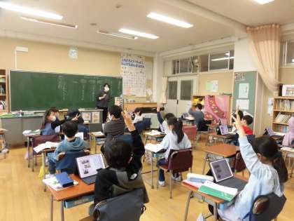 タブレットの扱いにもなれ、先生から送られてきたロイロノートで、楽しく取り組んでいました。