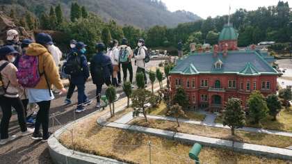 東武ワールドスクウェアです。予定より早くなっており、ここでの見学は1時間以上あります。行動班で広い園内思い思いの場所を見て回っています。