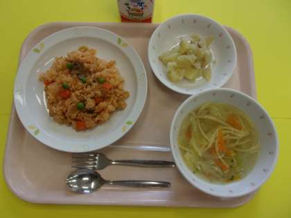 来週から、一年生の給食が始まります。カレーライスを予定しています。