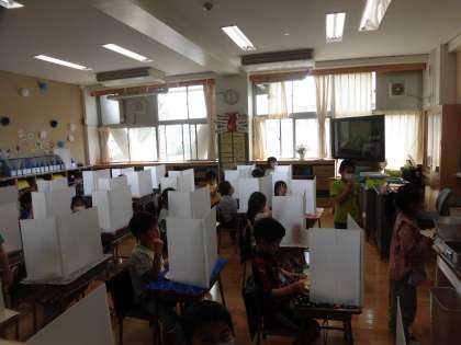 給食の時間、校舎内を見回って子どもたちの様子を見ています。感染症対策の「黙食」が定着し、静かな時間となっています。先日は、1年生が楽しい昼の放送に大いに反応して、ちょっとにぎわっていましたが、今日はもうそんな様子ではなく、クイズに答えるときにも、指で示したり、正解して「やったあ」という気持ちを声を出さずに表情や体で表していました。