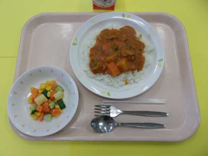 マセドアンサラダとは具材を角切りにしたサラダです。きれいな彩りのサラダに仕上がりました。
