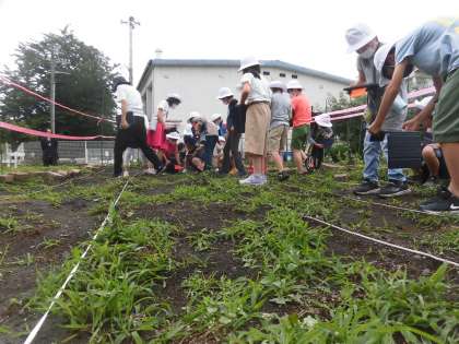学校公開期間で、多くの保護者の皆さんが参観に来てくださいました。3年生は八幡ファームで先日まいた種から芽が出ているのを観察しています。雑草と芽を見分けるのに苦心しながら、芽を見つけてうれしそうでした。