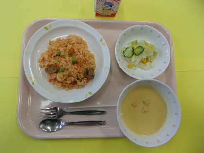 食パンをサイコロ状に切って、オーブンで焼いて「クルトン」を作りました。乳と卵成分を含んでない食パンを使いました。ポタージュの旨みが香ばしい「クルトン」をふりかけると、ひきたちました。。