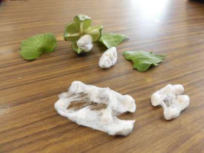 予想では「とろろあおい」「おくら」「わた」に分かれました。中身を割ってみて確認できました。