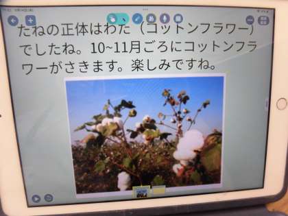 3年生の理科の時間、楽しそうな声がしています。1学期に八幡ファームにまいた種が何の種だったのかが分かったからです。ゲストティチャーの先生に教えてもらい、摘芯まで行いました。夏休みにはきれいな花が咲いて、ますます楽しみになってきた植物でした。3年生の子どもたちは、ときどき様子を見に八幡ファームに行っていました。