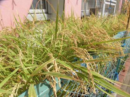 学校では、5年生の栽培している稲が金色に実っています。来週川場移動教室から帰ってきたら、5年生は稲刈りを行う予定です。