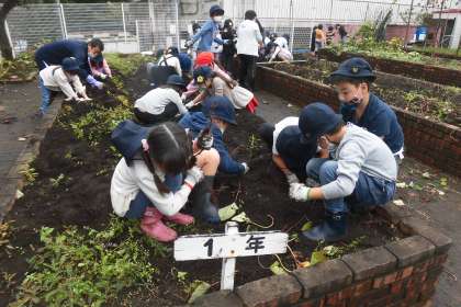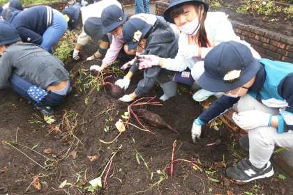 畑の草とりを一番がんばっていたという子は「みんなでほったおいもはみんなのこころがつまったおいしいおいも」という感想を話してくれました。ほかの子どもたちも、手伝ってくれた主事さんに感謝したり、栄養士さんに給食に出してくれるように頼んだり、このサツマイモを育てて、収穫するまでの思いをふくらませていました。
