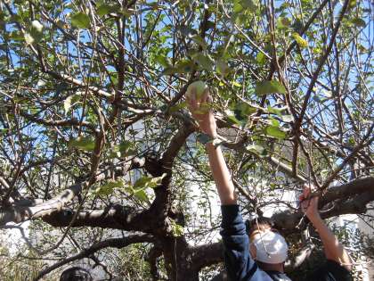 リンゴの収穫を予定していたのですが、それにちょうどいいお天気となりました。屋は和ファーム委員会の子どもたちが、収穫してくれました。