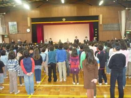 今日は2011年2学期の終業式でした。児童代表の言葉を担当した3年生の代表は、自分の決意を原稿を見ずにきちんと発表することができました。また、転出児童のあいさつや生活指導の先生からの注意などを落ち着いた態度で聞くことができました。