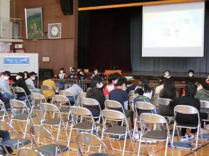 協力者のお菓子屋さんである岡本さんや学校運営委員会の方々、支援者である保護者地域の方が見守る中、子どもたちが考えて作ったパワーポイントで、わかりやすく報告が行われました。子どもたちがとても頼もしく思えました。