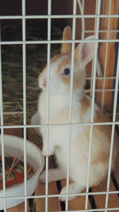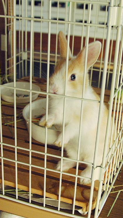 このうさぎは、まだ子どもなので、だいたり、ケージから出したりすることは、出きません。もう少し大きくなったら、飼育小屋のにわとりのとなりにいれるつもりです。このうさぎは、穴ほりうさぎなので、大きくなったら穴を掘って、小屋からだっ出することもできてしまうので、小屋の下にれんがをしきました。