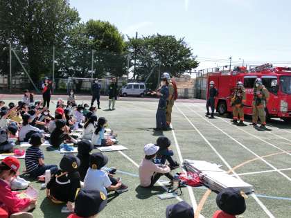 すぐに写生会になるのではなく、消防の仕事についていろいろと学ぶいい機会になったと思います。お話しを聞いてから、描く消防車はどんな感じに仕上がるでしょう。楽しみですね。