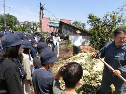 すっきり晴れてそよ風の吹く気持ちのいい校外学習です。ここで、子どもたちはいろいろなことを感じて、考えていました。農家の方々のガイドもすてきで、子どもたちの興味を引くものがたくさんありました。一番感じていたのは「土」のことです。今日をスタートに、子どもたちの探究的な学びが進んでいきます。本校の「八幡ファーム」での活動rたとどのようにつながっていくのか、楽しみです。