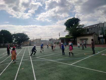 朝の活動、八幡っ子タイムです。縦割り班ごとに前もって決めていた遊びをしました。1年生にとっては、初めての縦割り班での遊びです。なかには少し緊張している子もいたようです。6年生が、班のみんなが楽しく遊べるように考えて行動しています。今はまだぎこちなさが見られるところもありますが、だんだん仲よしになっていきます。