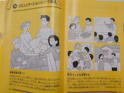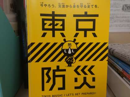 年に一度の訓練ですが、これを機会に防災に関する確認を家族でしていただけたらと思います。写真は東京防災の冊子です。家の近くではどのあたりにきをつけたらいいのかなど、具体的に考えて、災害に備えましょう。