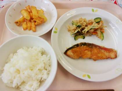 今日は「鮭」に、玉ねぎと醤油ベースで作ったタレをかけました。