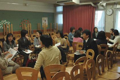 つづき〜 授業の後は参観者と本校教員が集まって協議会を行いました。今回は、本校のPTAが取り組んだ研修「うれしいことばを咲かせよう」の取組みを最初にプレゼンしてもらい、その後、子どもたちの言葉や友達を思いやる気持ちにスポットをあてて、グループに分かれて意見交換をしました。子どもたちの現状と学校でのこと、社会のことまで話しが広がり、充実した会になりました。最後に再び集まって各グループからの報告を発表しあい、都教育委員会指導主事の先生のご講評をいただきました。PTAで取り組んだことが、このような形で活かすことができてよかったと思います。