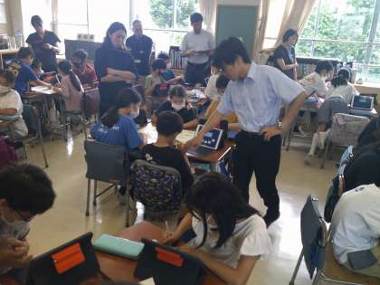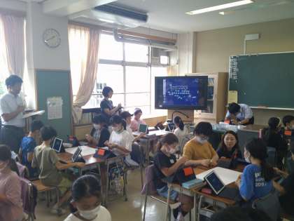 5年生の総合的な学習の時間です。5年生は自然を生かした野菜作りに挑戦するようです。今日の授業では、それに必要なことをグループでそれぞれに考えています。グループごとに目標をもって学習の計画を立てています。この総合的な学習の単元は、1年間の長い時間をかけて、この学習に取り組みます。楽しみですね。