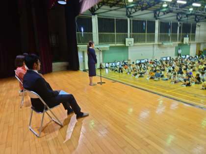 今日は、離任式がありました。この春、異動された先生の方との再会です。子どもたちのなかにはずっとこの日を待っていた子も多かったようです。先生方のお別れの言葉は心に沁みるものとなりました。「みんなは一人では生きていけません。いくつもの偶然を重ねたこの出会いを大事にしてほしいと思います。」「八幡小学校をもっともっとステキな学校にしてください。皆さんの活躍を見守っています。」「皆さんが助け合ったり協力し合ったりできるステキなところを応援しています。」