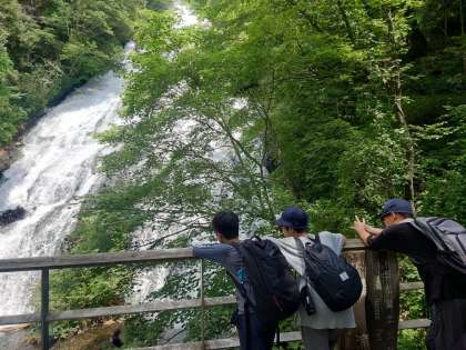 ハイキングの終わりには湯滝があります。ここでも写真をとりました。後でバスのガイドさんが、「華厳の滝と湯滝では、どちらが好きですか?」子どもたちに聞きました。皆さんはどうですか?バスの子どもたちは、6割が華厳の滝という結果になりました。