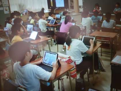 各クラスで自由研究発表会を行っています。ロイロノートで発表の内容をまとめて、画面共有でみたり、テレビ画面でみたりと、タブレットをうまく使っている様子がいろいろなクラスで見られました。便利な使い方ができています。