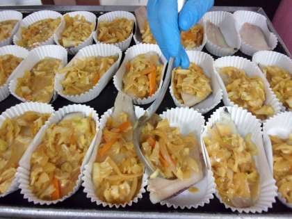 秋から冬にかけて獲れる鮭を使うのが一般的ですが、今日はタラを使っています。