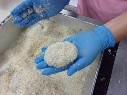 じゃがいものコロッケはホクホク感があり、里芋のコロッケはねっとりとした感があります。今日の里芋コロッケは、じゃがいもも入っていますが、里芋の食感を味わえるコロッケに仕上がりました。