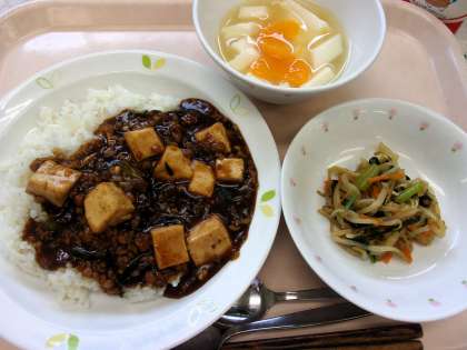 四川豆腐ライスは、八幡小学校で定番として出ているメニューです。