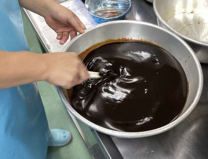 レシピを見ると、豆板醤と山椒が入っていましたが、小学校では1年生〜大人まで同じ給食のため、辛さを加減しながら作りました。本格的に仕上げる決め手は、テンメンジャンです。ごはんがすすんだでしょうか。