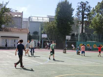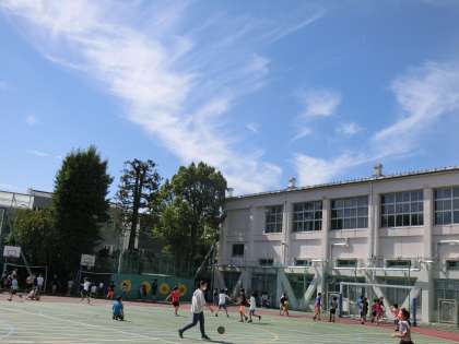 休み時間には多くの子どもたちが校庭で元気に遊んでいます。先生たちも一緒に遊んでいる姿も見られました。休み時間に元気いっぱい遊び、授業には集中して取り組むということが大切です。健康な体作りも大事なことですね。