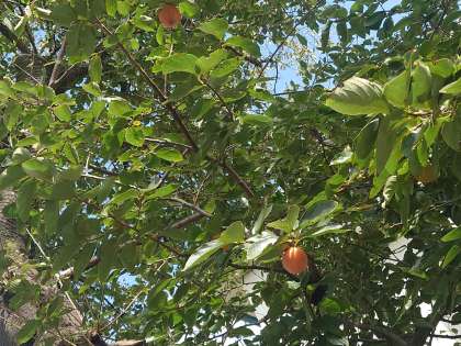 色付いたある果物の実を見つけました。みかんではありません。この木は、八幡ファームにはありません。学校のどこかにある木です。探して見てください。