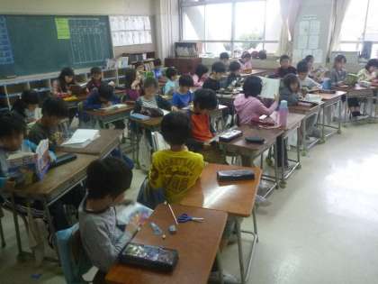 子どもたちは、本が大好き。今朝の読書タイムでもいろいろな本を夢中になって読んでいました。一年生も初めての読書タイムを楽しく過ごしていました。これからも本の中に隠れている未知の世界を、積極的に探っていってほしいと思います。