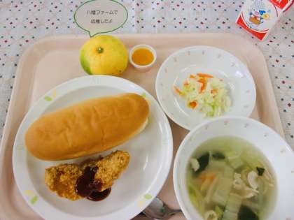 教室をのぞいてみると、パンに、みかんジャムとフィッシュフライを一緒にサンドしている子どもたちがいて美味しいとの声が。それぞれ味わってくれていて嬉しいかぎりです。