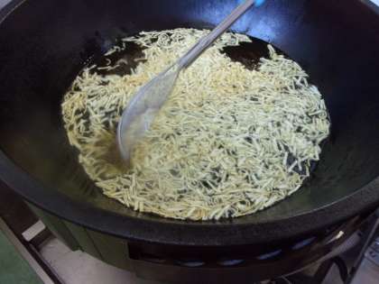 ※写真3枚目は、パリパリサラダのワンタンを揚げているところです。