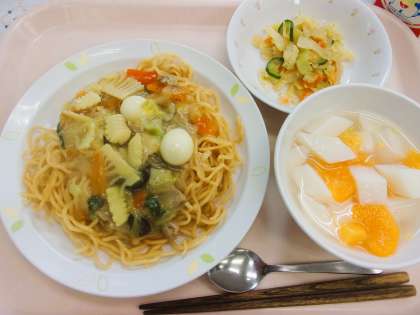 杏仁豆腐は、牛乳・練乳・砂糖・寒天で牛乳寒天を作ります。練乳が入っているのでコクがあります。たっぷりのフルーツの甘みと酸味、牛乳寒天のコクとシロップの甘みを楽しんでいただけたでしょうか。