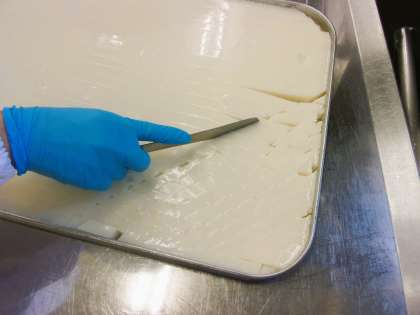 ※写真3枚目は、牛乳寒天をひし形にカットしているところです。