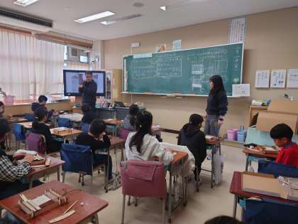 3年生が八幡ファームで育て、収穫した和綿を使って、糸を紡いぎました。さらに機織りをして、小さな布が出来上がって来たところです。生成りのところどころ太さにムラのある味わい深い作品です。子どもたちにとっては難しいところも多かったようですが、ゲストティーチャー先生のおかげで、粘り強く取り組んできました。完成した布を改めてみたいてすね。