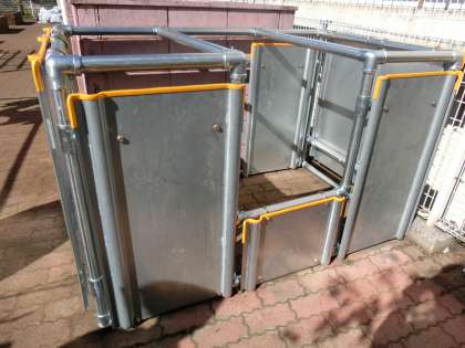 5年生は総合的な学習の時間に、地域の農園に出向いて土づくりを学んできました。落ち葉や枯れ枝を利用して、八幡ファームの土を改良し、もっと作物がよく育つ畑にしようという取り組みに挑戦しています。これまであった取った草を置くところを、もっと使いやすいものにするために、世田谷区の用務班さんというところにお願いして、このような場所を整備してもらいました。