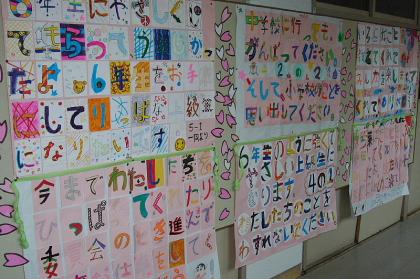各学年から6年生へあてたメッセージボードも紹介しておきます。心を込めて一生懸命つくりました。