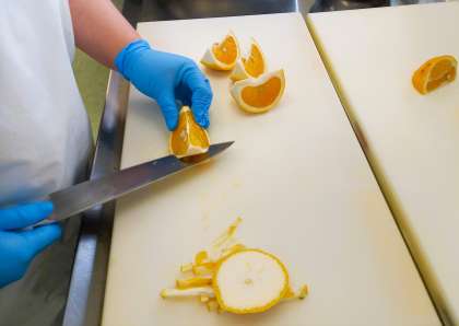 ※写真2枚目は、甘夏に切り込みを入れているところです。