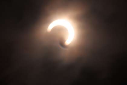 7時10分前後から太陽が見え始め、7時30分にはカメラにもしっかり写るようになりました。金環日食の時間帯は見事に雲が切れ、撮影も成功。