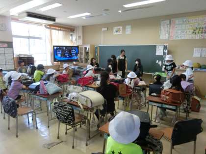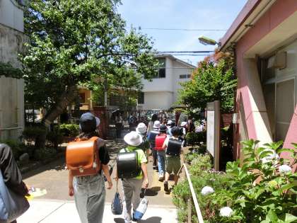 近くに住んでいる友達と顔見知りになっておくことで万一の時には助け合うことができます。今回は、自己紹介をしたあと、通学路の確認をしながら一緒に下校しました。