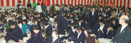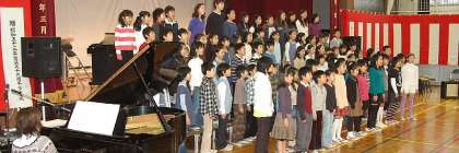 写真下:九品仏小学校と八幡小学校合唱団が合同で・・・「ゆかいに歩けば」