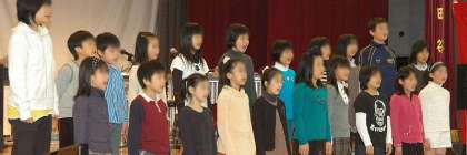 写真中:九品仏小学校合唱団「九品仏小学校校歌」「カリブ夢の旅」「さびしいカシの木」「花色カメレオン」