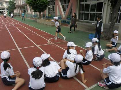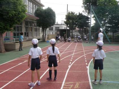 今日の午前中は、ソフトボール投げの計測です。地域の方々やおやじの会等のご協力で中学年がソフトボールを投げました。