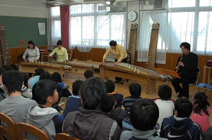 ひととき、ランチルームが邦楽のしらべで雅(みやび)な空間になりました。5年生・6年生それぞれに2回のすばらしい演奏をしていただきました。