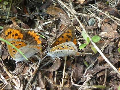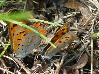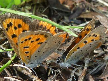 ふじやまビレッジの中で見かけたこの蝶は「ベニシジミ」。どこにでもいるシジミ蝶の仲間ですが、よく見ると美しい羽をもっています。