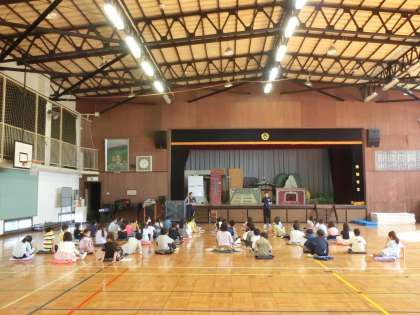 11月の学芸会に向けて、少しずつ準備や練習が始まりました。体育館には、1年生が集まって、学芸会の説明を聞いたり台本を読んだりしていました。どんな劇になるのか楽しみですね。