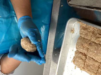 ※写真2枚目は、一人分ずつていねいに形を作っているところです。