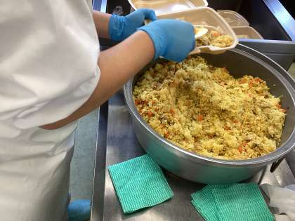 ※写真2枚目は、お弁当箱にピラフをつめているところです。